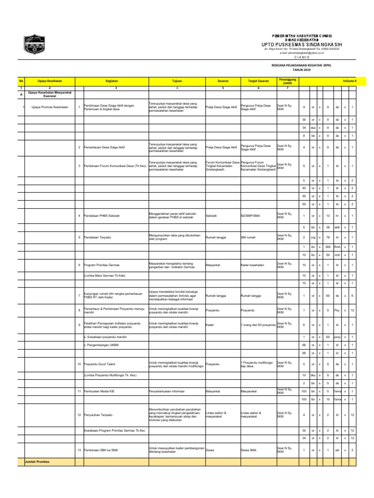 Rencana Kegiatan Kesehatan Ciamis 2019