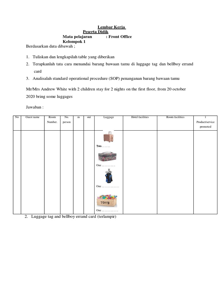 2. Terapkanlah tata cara menandai barang bawaan tamu di luggage tag dan bellboy errand