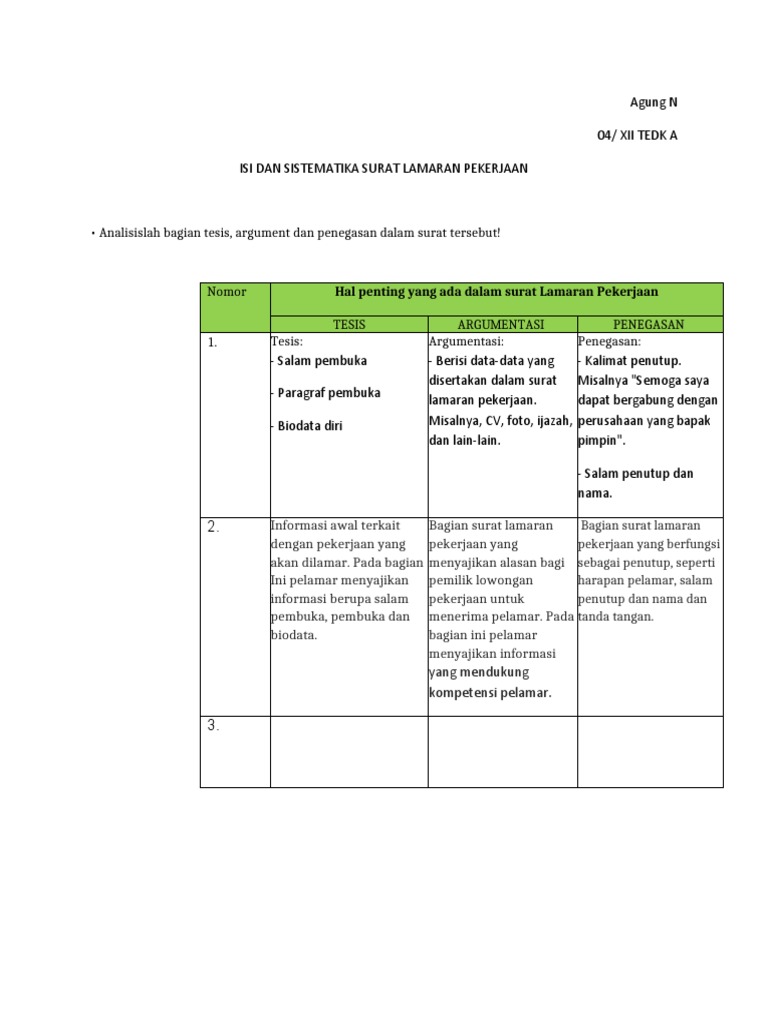 • 1. Bagaimana pendapat kalian tentang sistematika surat lamaran pekerjaan