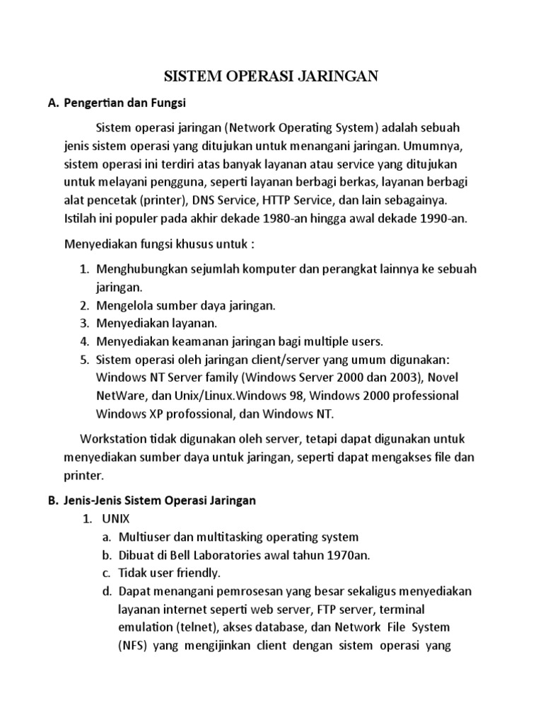 B. Jenis-Jenis Sistem Operasi Jaringan