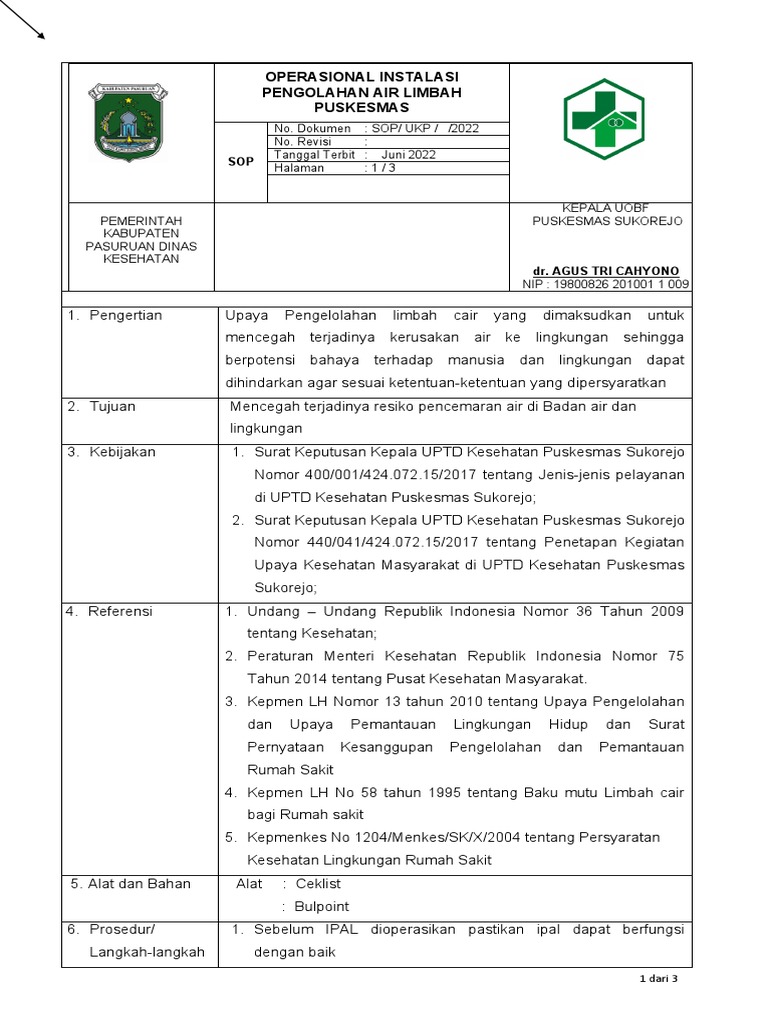 6. Prosedur/ 1. Sebelum IPAL dioperasikan pastikan ipal dapat berfungsi