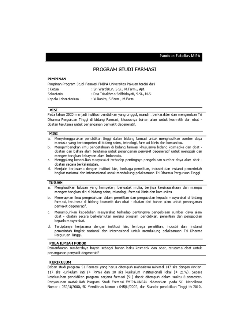 Penyusunan matakuliah Program Studi Farmasi FMIPA-UNPAK didasarkan pada SK Mendiknas