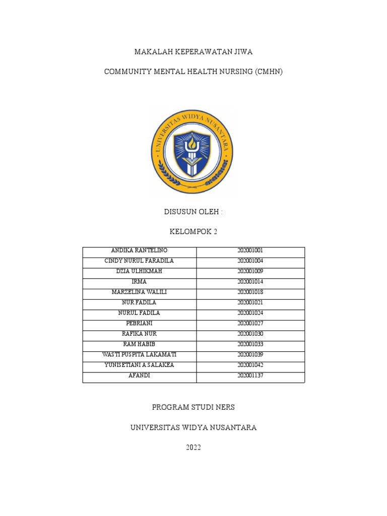 Jiwa, Adapun materi yang kami buat adalah "COMMUNITY MENTAL HEALTH NURSING