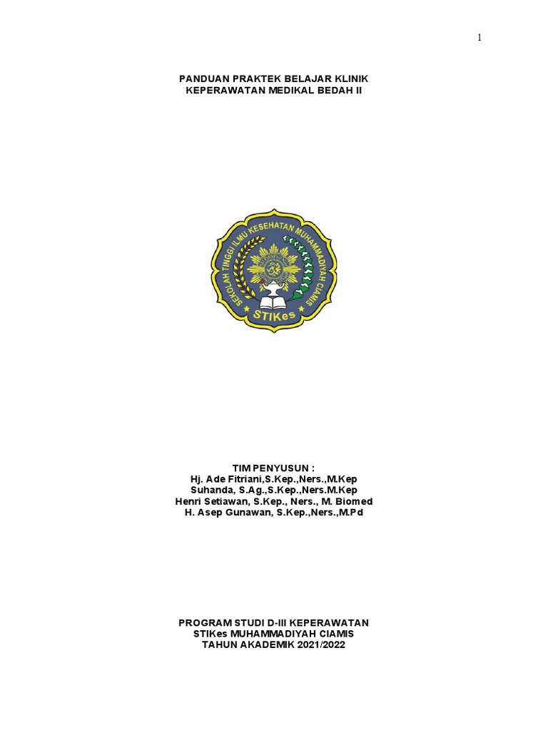 ridho-nya kami dapat menyelesaikan Buku Panduan Blok Mata Kuliah Keperawatan Medikal Bedah II