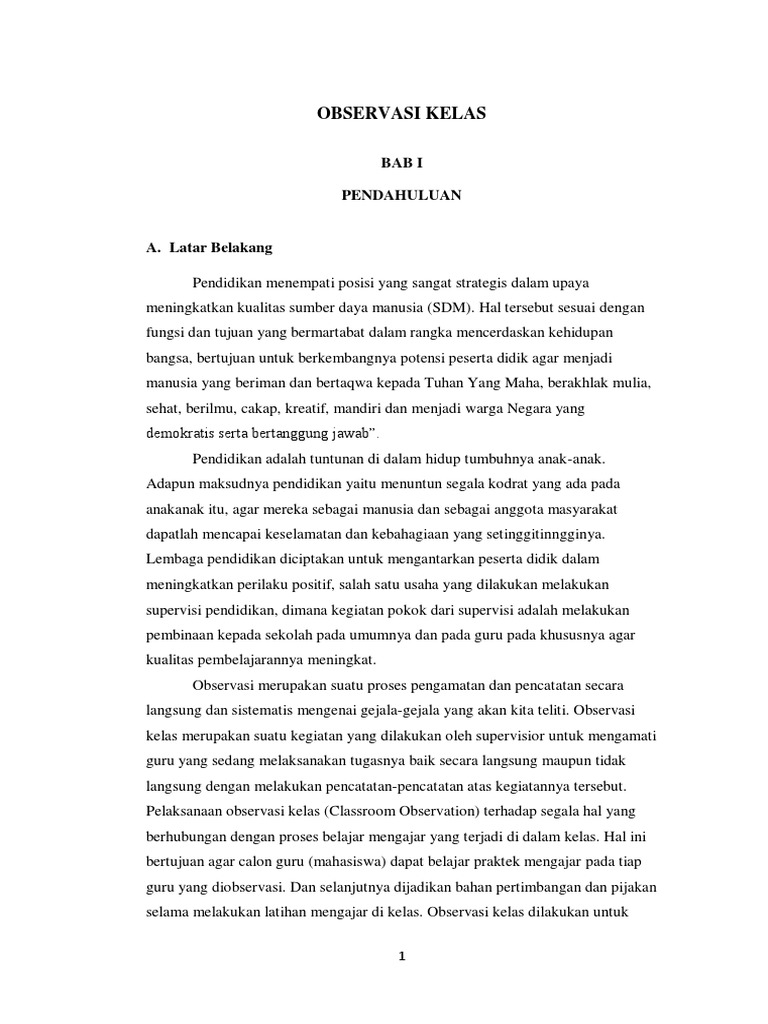 mudah sebagaimana dibayangkan oleh banyak orang. Observasi kelas