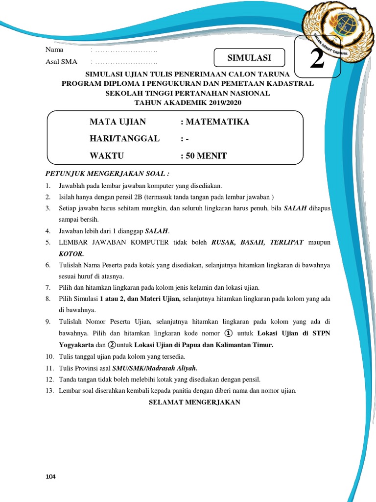 Simulasi Ujian Matematika STPN 2019/2020