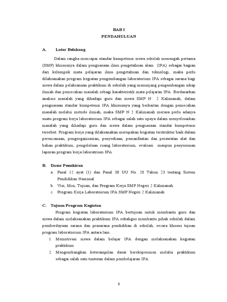suatu program kerja laboratorium IPA sebagai salah satu upaya dalam menyelesaikan