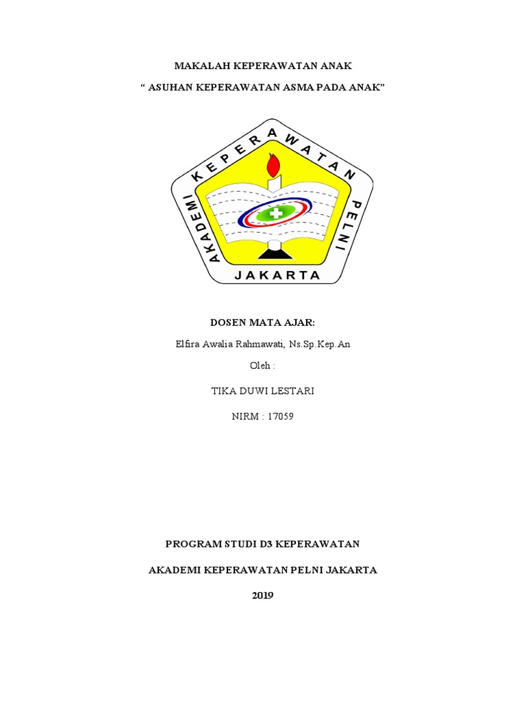 Aryandani, R, anak sehat bebas dari asma. Golden book. Yogyakarta. 2010