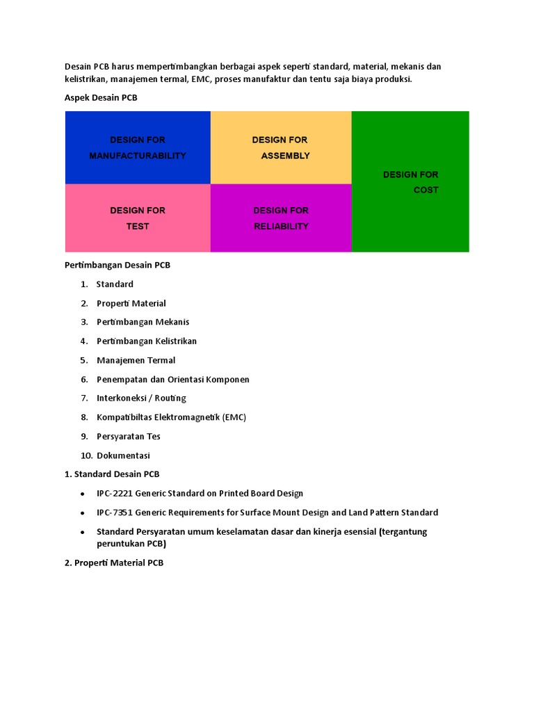 Desain PCB harus mempertimbangkan berbagai aspek seperti standard, material, mekanis dan