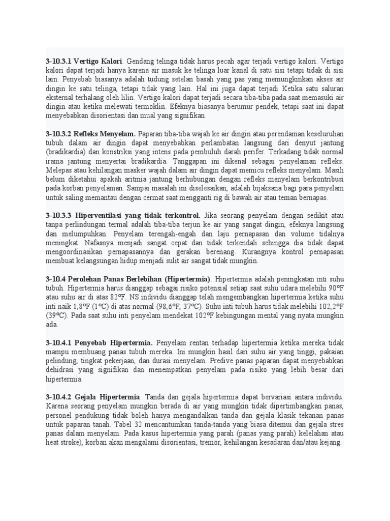 3-10.4.1 Penyebab Hipertermia. Penyelam rentan terhadap hipertermia ketika mereka tidak