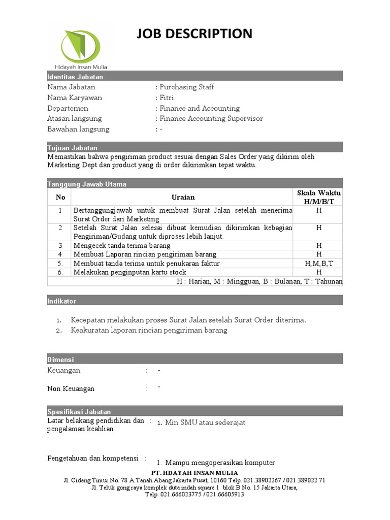 1 Bertanggungjawab untuk membuat Surat Jalan setelah menerima H
