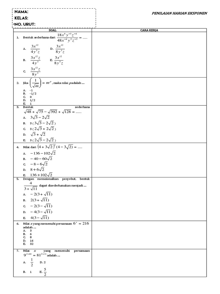 13. Bentuk 3 x 1 15 ekuivalen dengan x = ....