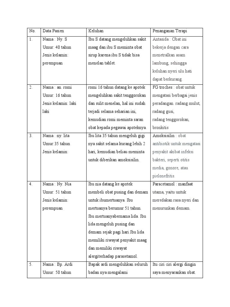 1. Nama : Ny. S Ibu S datang mengeluhkan sakit Antasida : Obat ini