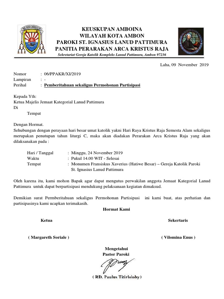 Demikian surat Permberitahuan sekaligus Permohonan Partisipasi ini kami buat, atas perhatian dan
