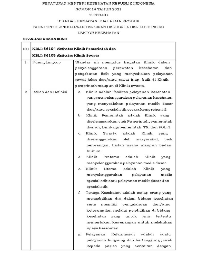 1. Ruang Lingkup Standar ini mengatur kegiatan Klinik dalam
