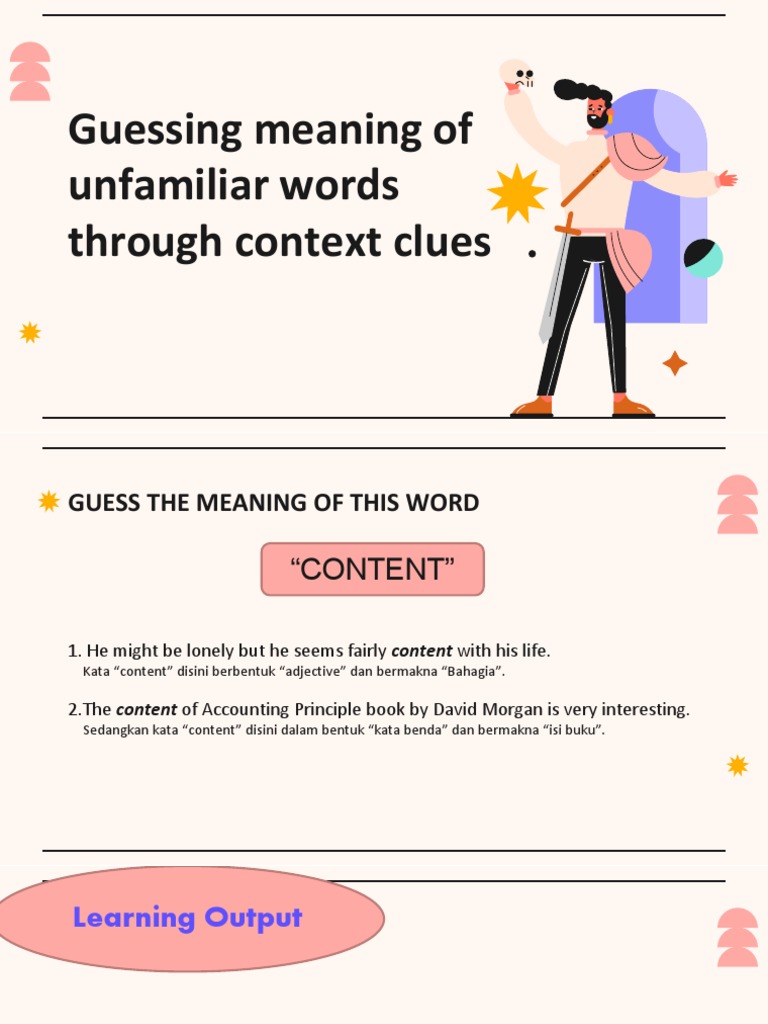 Sedangkan kata “content” disini dalam bentuk “kata benda” dan bermakna “isi buku”.