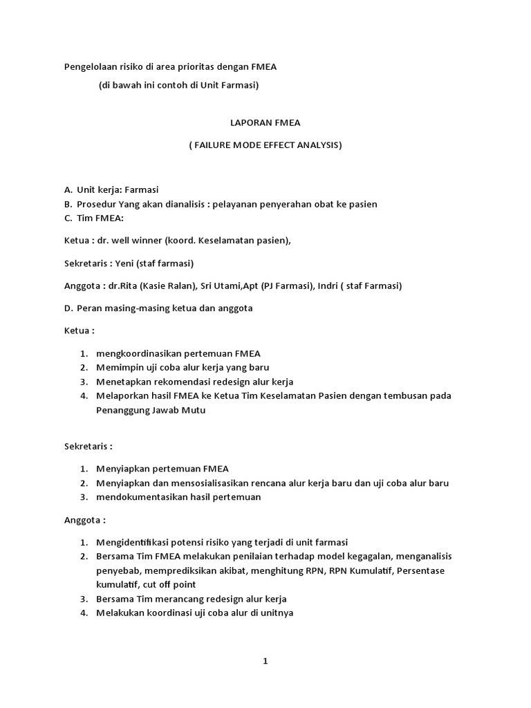 4. Melaporkan hasil FMEA ke Ketua Tim Keselamatan Pasien dengan tembusan pada
