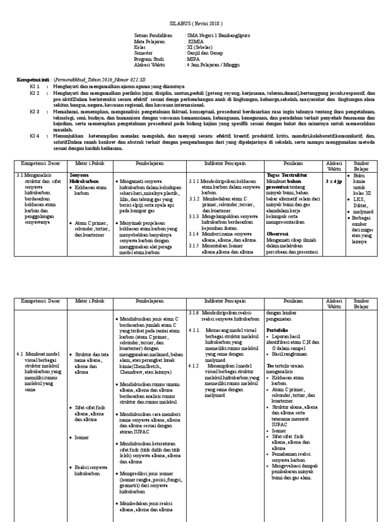 Silabus Kimia Kelas XI SMA 2018