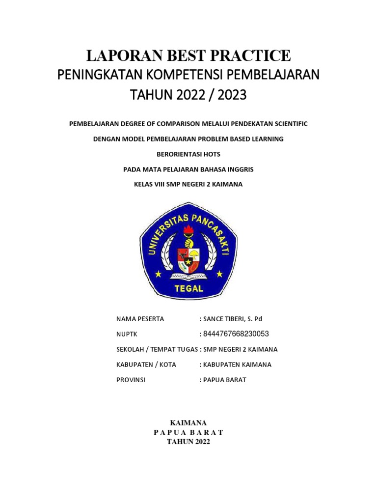 NAMA PESERTA : SANCE TIBERI, S. Pd