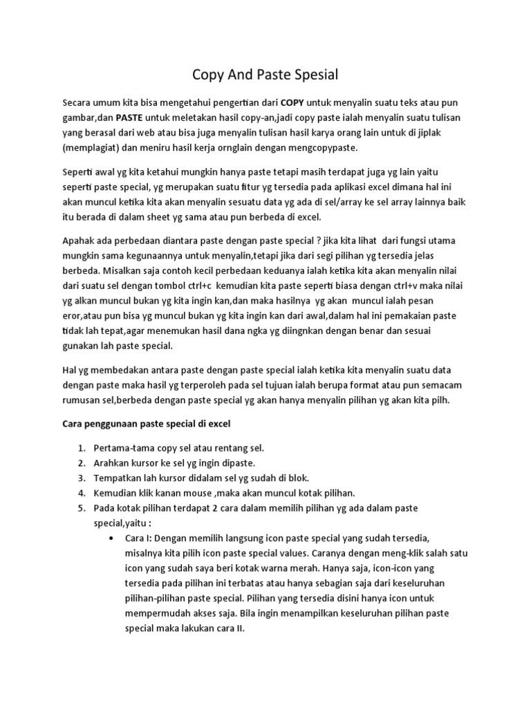 Hal yg membedakan antara paste dengan paste special ialah ketika kita menyalin suatu data