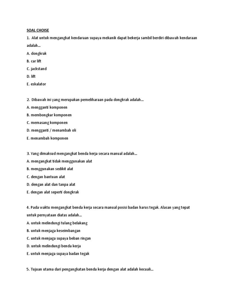 2. Dibawah ini yang merupakan pemeliharaan pada dongkrak adalah…