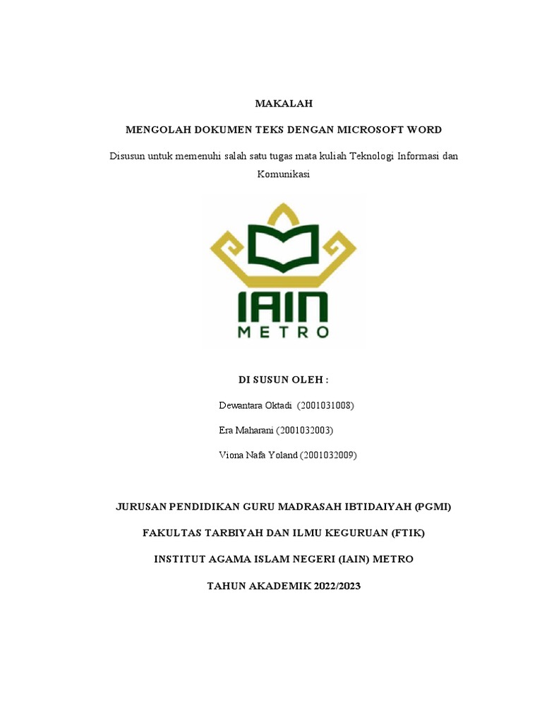 waktunya yang berjudul “Mengolah Dokumen Teks Dengan Microsoft Office”.