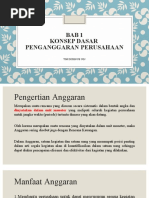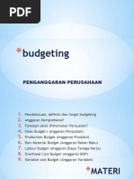 Penganggaran Perusahaan (Budgeting) yaitu suatu proses perencanaan dan pengendalian keuangan kegiatan operasi perusahaan yang dinyatakan dalam satuan kegiatan dan satuan uang, yang bertujuan untuk memproyeksikan operasi perusaahaan tersebut dalam proyeksi laporan keuangan (Laporan Rugi Laba, Neraca, Perubahan Modal) dan aliran kas.