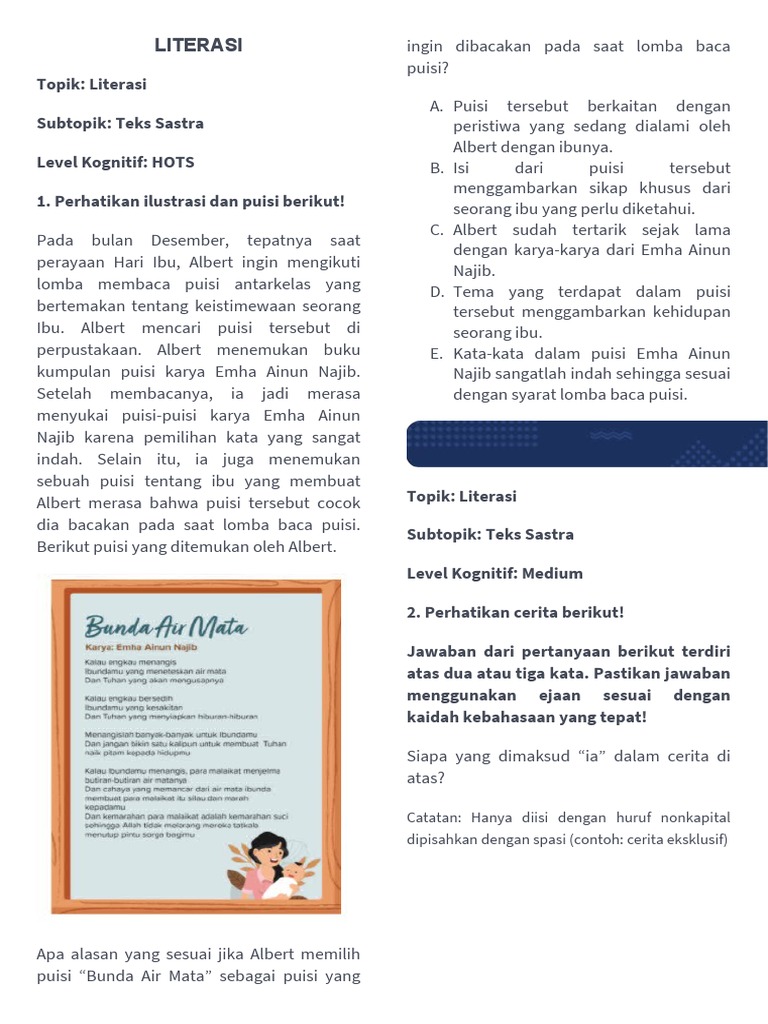 Albert merasa bahwa puisi tersebut cocok Topik: Literasi