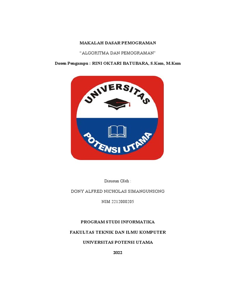 Dalam makalah yang berjudul ALGORITMA DAN PEMROGRAMAN