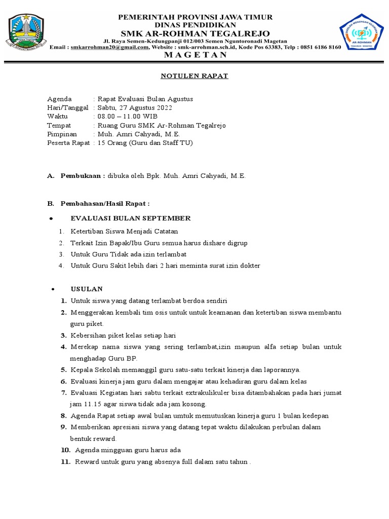 Agenda : Rapat Evaluasi Bulan Agustus