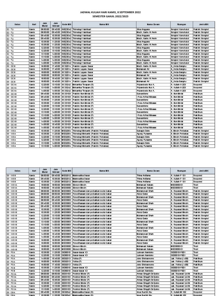 Jadwal Kuliah Kamis 8 September 2022