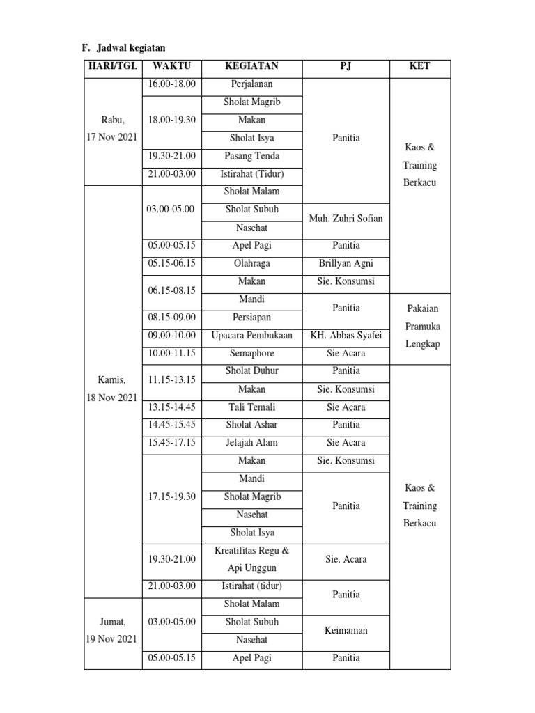 HARI/TGL WAKTU KEGIATAN PJ KET