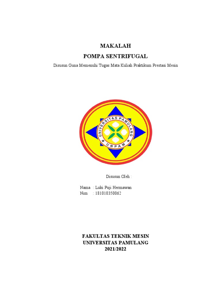 berjudul “Pompa Sentrifugal ”. Adapun maksud saya penyusunan makalah ini tidak
