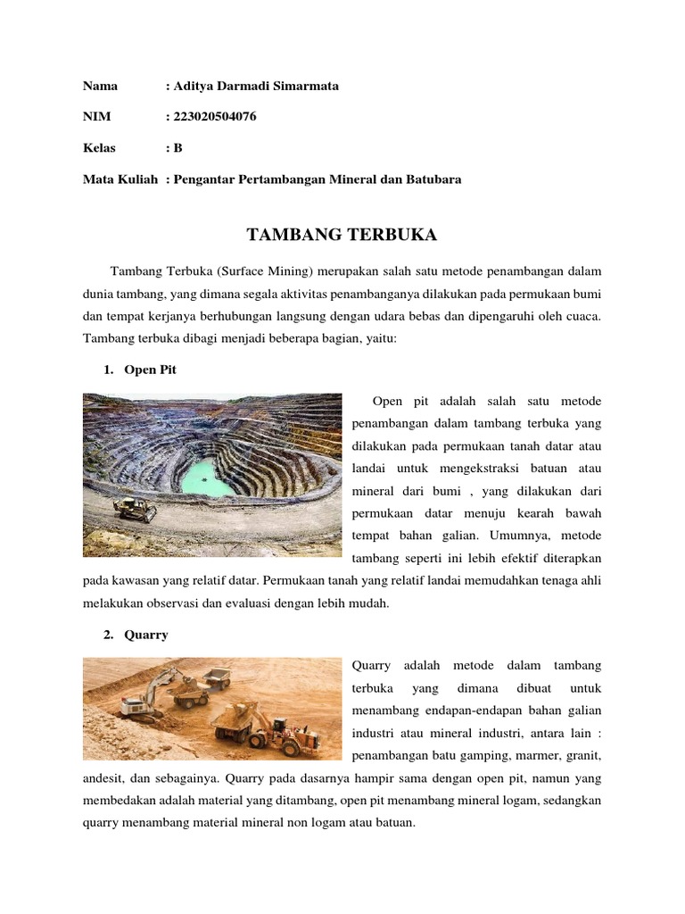 Tambang Terbuka (Surface Mining) merupakan salah satu metode penambangan dalam