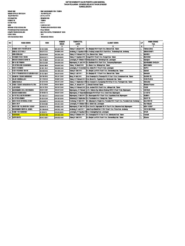 337 2069/029.099 0023783105 SYAIKHU ROBBY ALAMBARA L Tuban,04 Juni 2002 Mohamad hamim