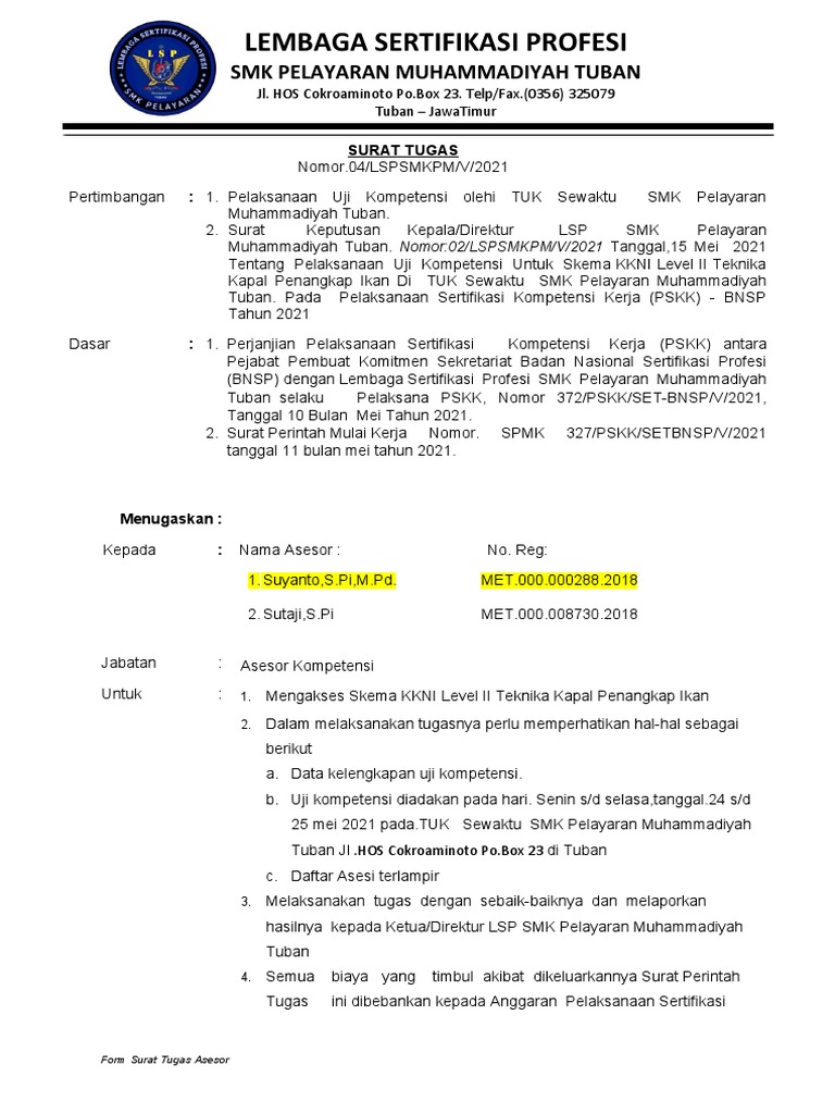 hasilnya kepada Ketua/Direktur LSP SMK Pelayaran Muhammadiyah