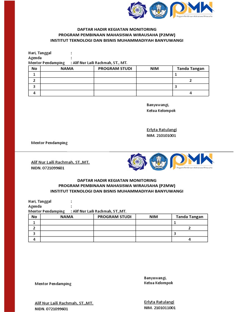 Mentor Pendamping : Alif Nur Laili Rachmah, ST.,MT.