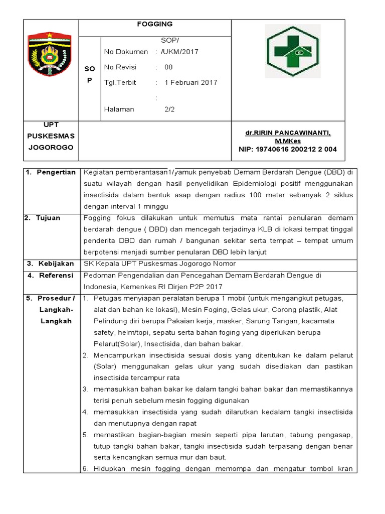 2. Tujuan Fogging fokus dilakukan untuk memutus mata rantai penularan demam