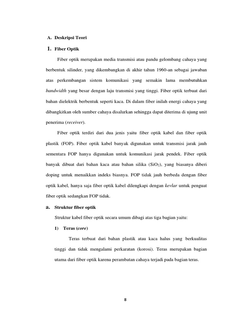 bandwidth yang besar dengan laju transmisi yang tinggi. Fiber optik terbuat dari