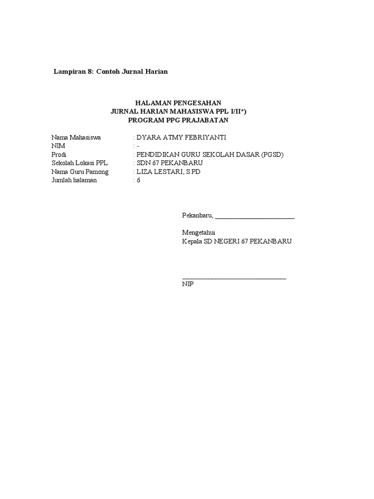 Lampiran 8: Contoh Jurnal Harian