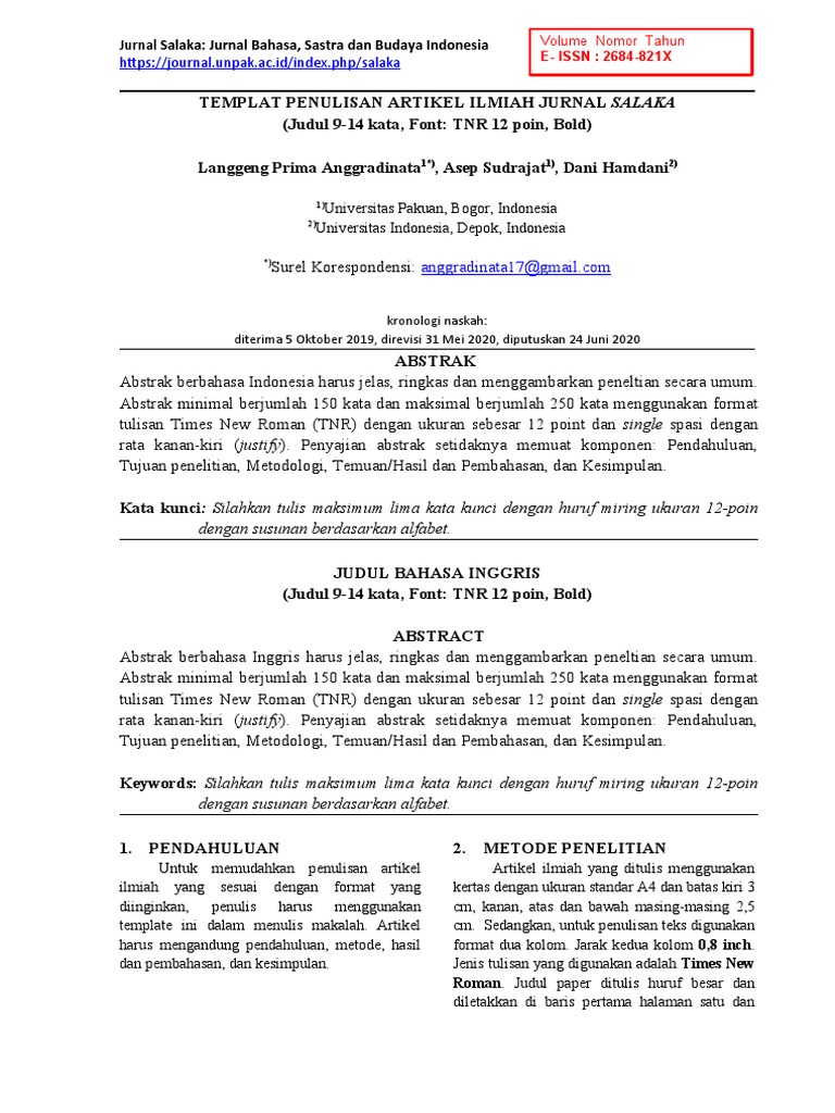 TEMPLAT PENULISAN ARTIKEL ILMIAH JURNAL SALAKA