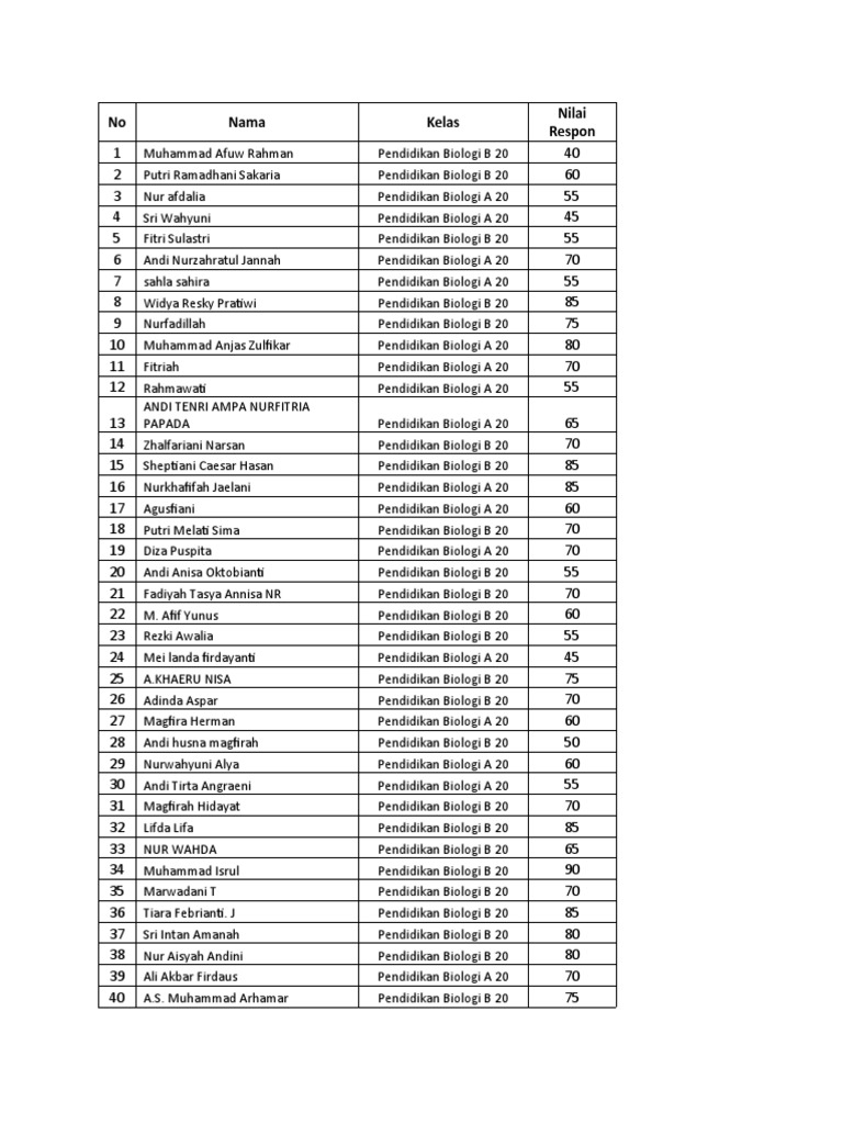 40 A.S. Muhammad Arhamar Pendidikan Biologi B 20 75