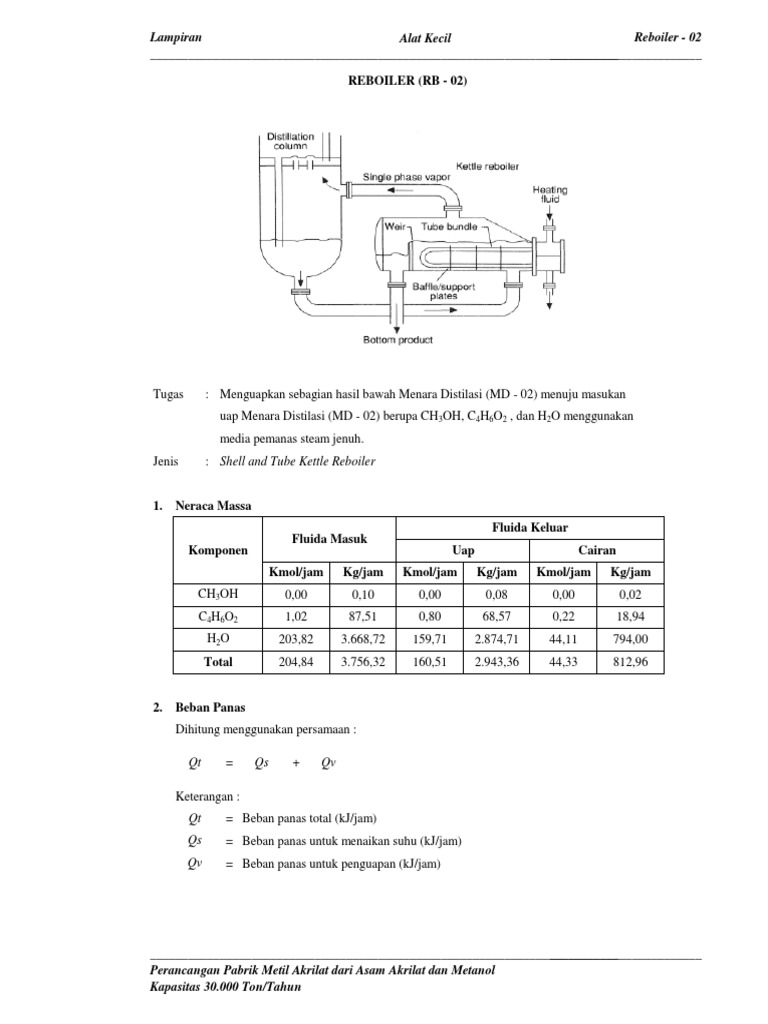 Tugas : Menguapkan sebagian hasil bawah Menara Distilasi (MD - 02) menuju masukan