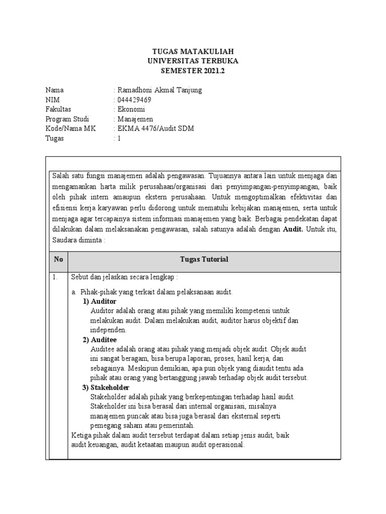 Kode/Nama MK : EKMA 4476/Audit SDM