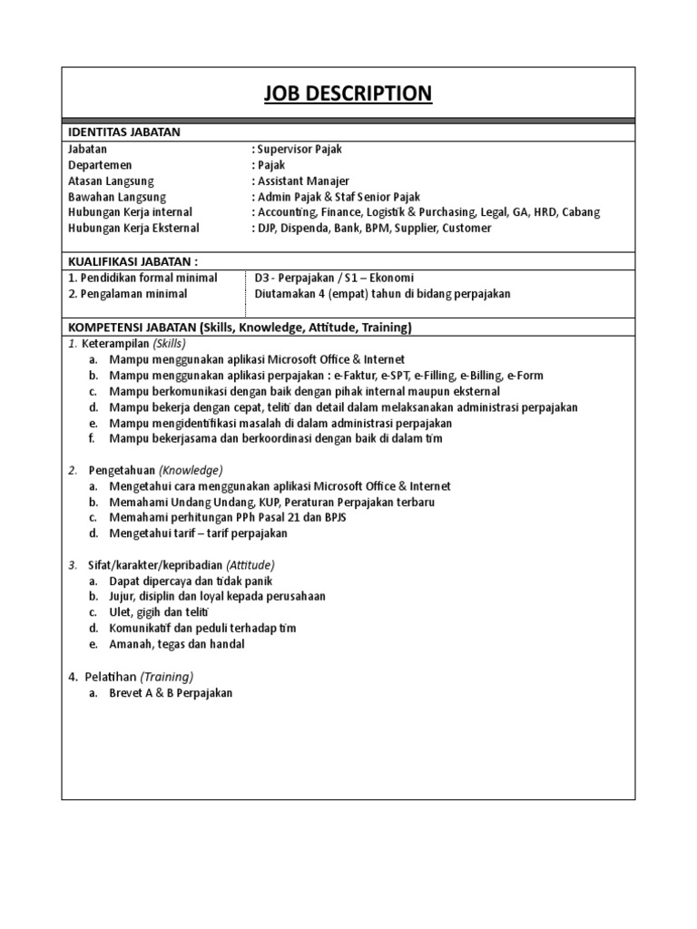 Jabatan : Supervisor Pajak