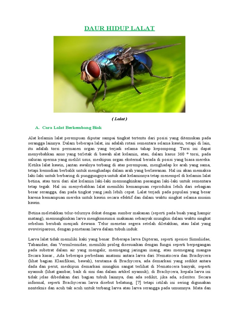 tetap tegak. Hal ini menyebabkan lalat memiliki kemampuan reproduksi lebih dari sebagian