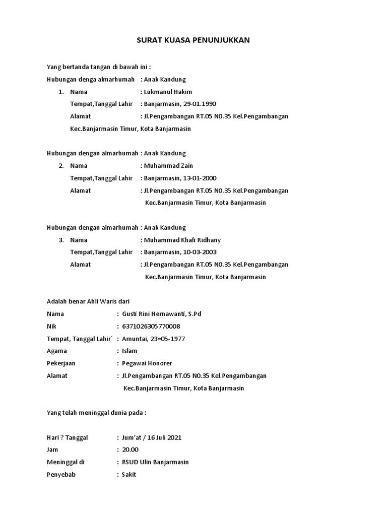 Demikian Surat Kuasa ini dibuat dengan sebenar-benarnya dan untuk dipergunakan sebagaimana