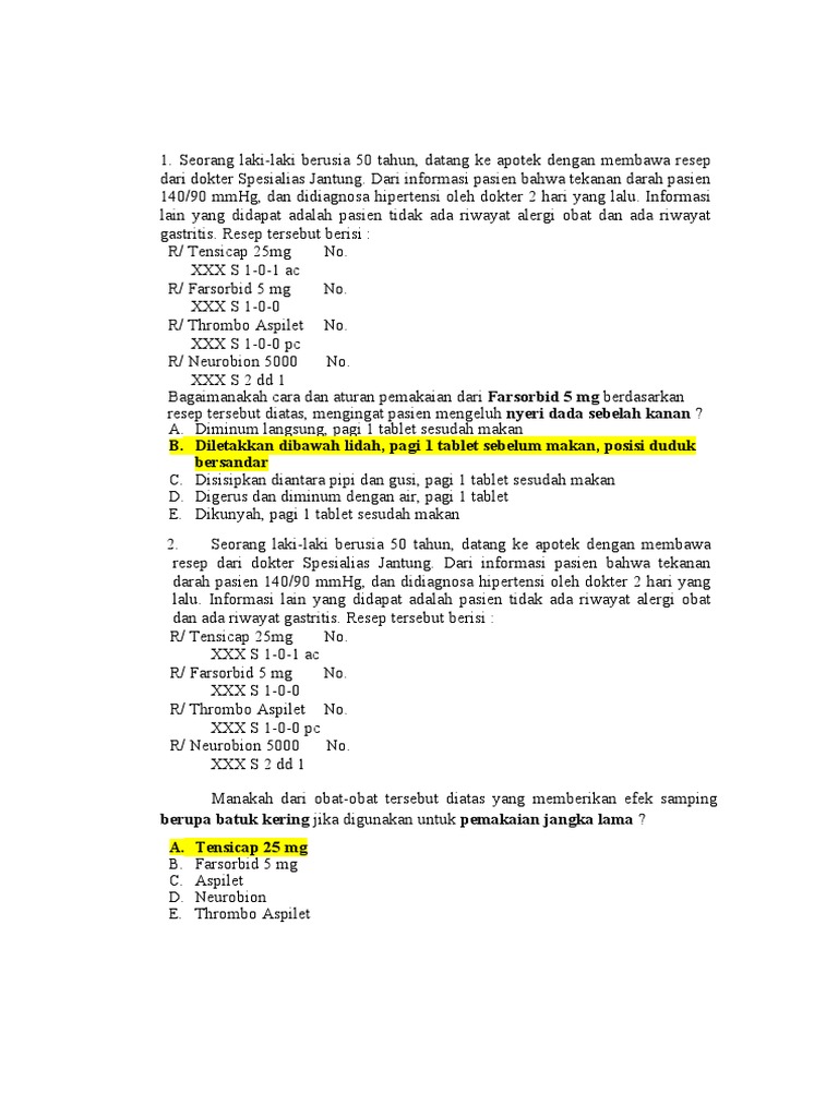 2. Seorang laki-laki berusia 50 tahun, datang ke apotek dengan membawa