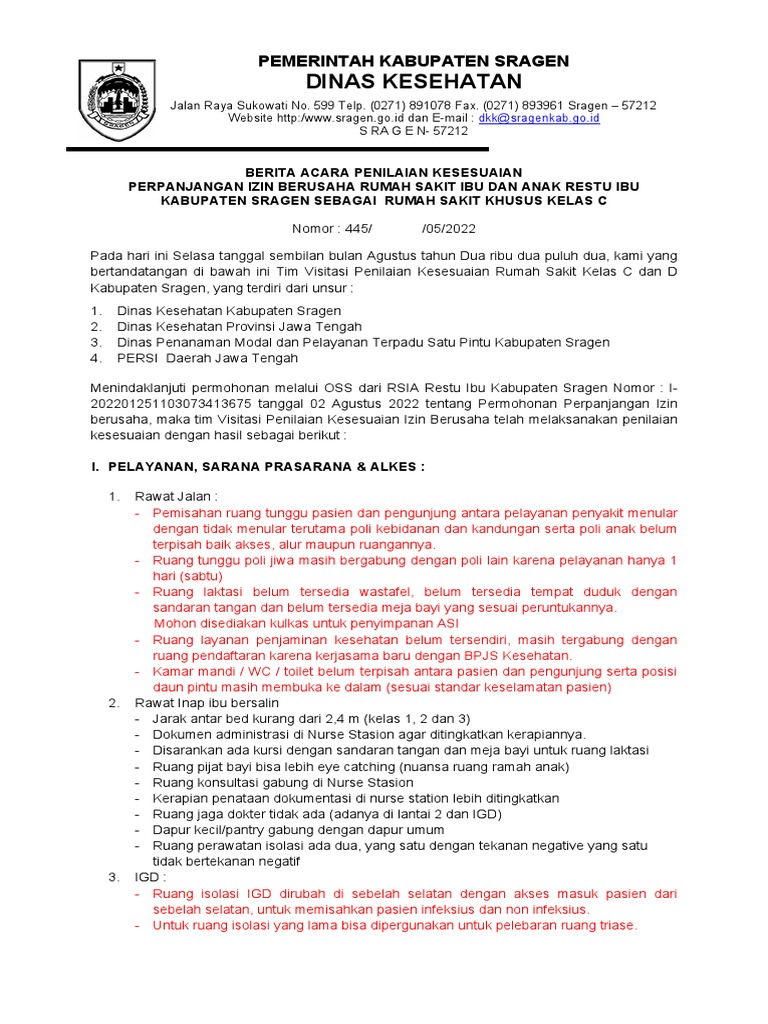 Demikian Berita Acara Visitasi Penilaian Kesesuaian Perpanjangan Izin Usaha Rumah Sakit ini