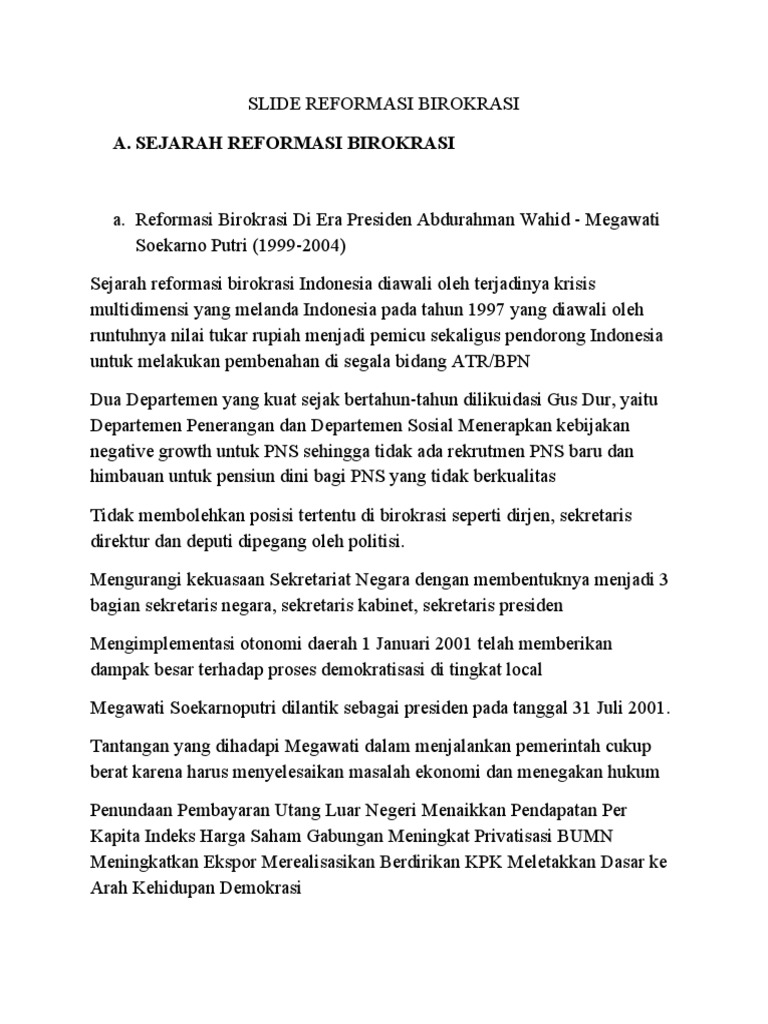 a. Reformasi Birokrasi Di Era Presiden Abdurahman Wahid - Megawati